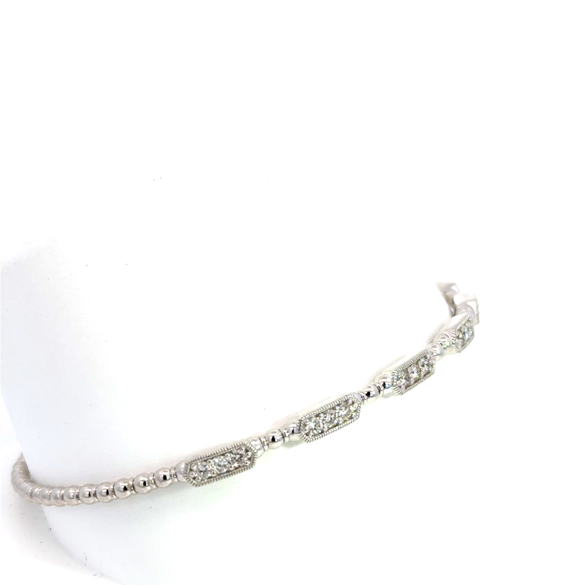 This exquisite diamond bangle bracelet is accented with .53dtw diamonds and is set in 14kt white gold.