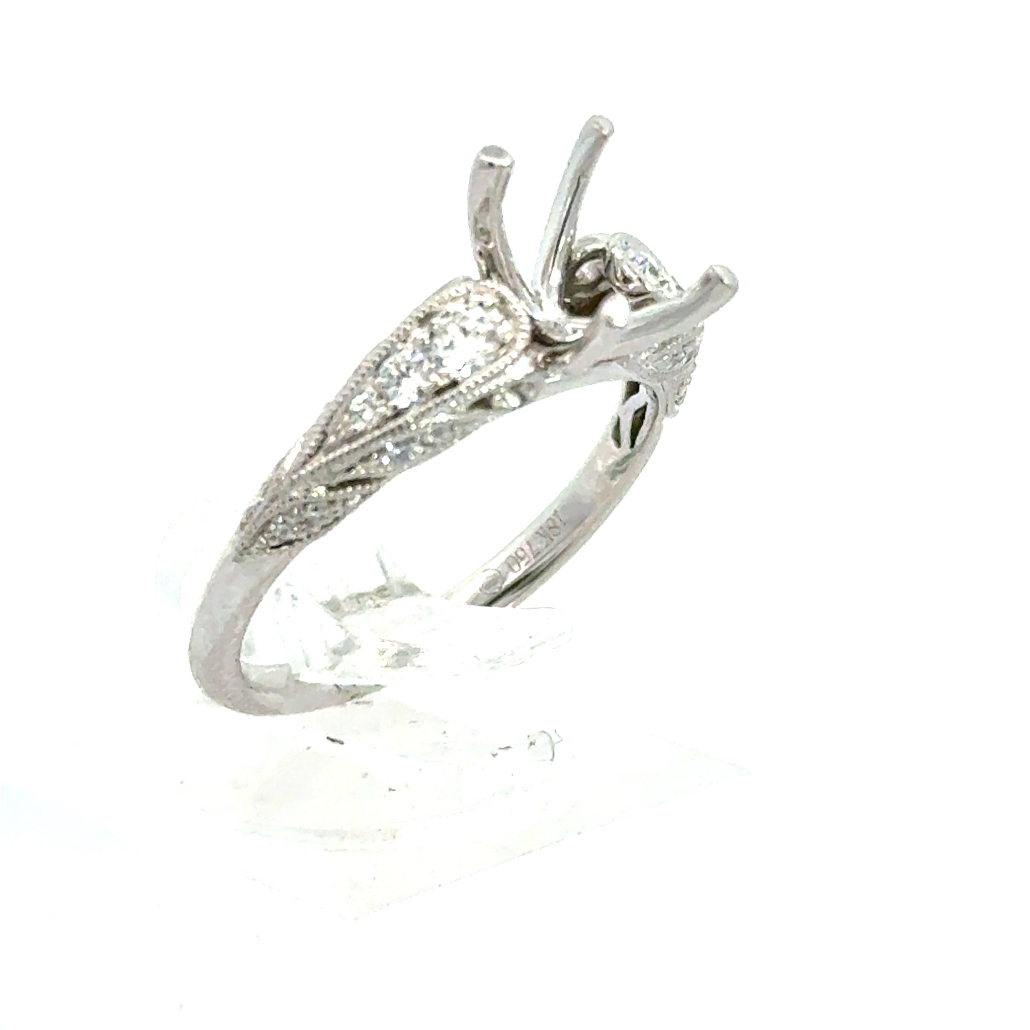 This exquisite diamond semi mount contains .27dtw of round shimmering diamonds and is crafted in 18kt white gold.